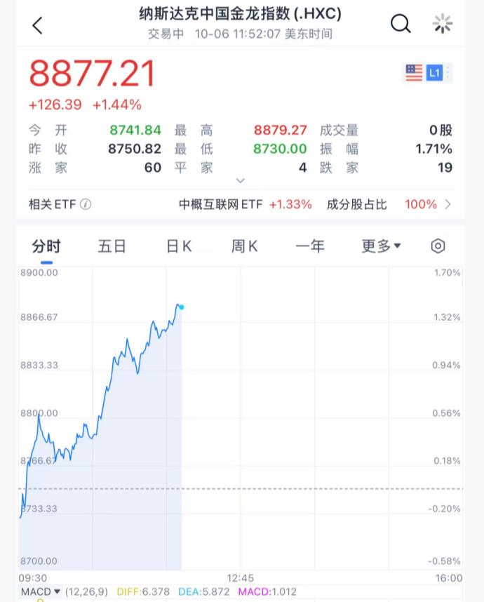 中国资产方面,中概股指数涨约1.5%。