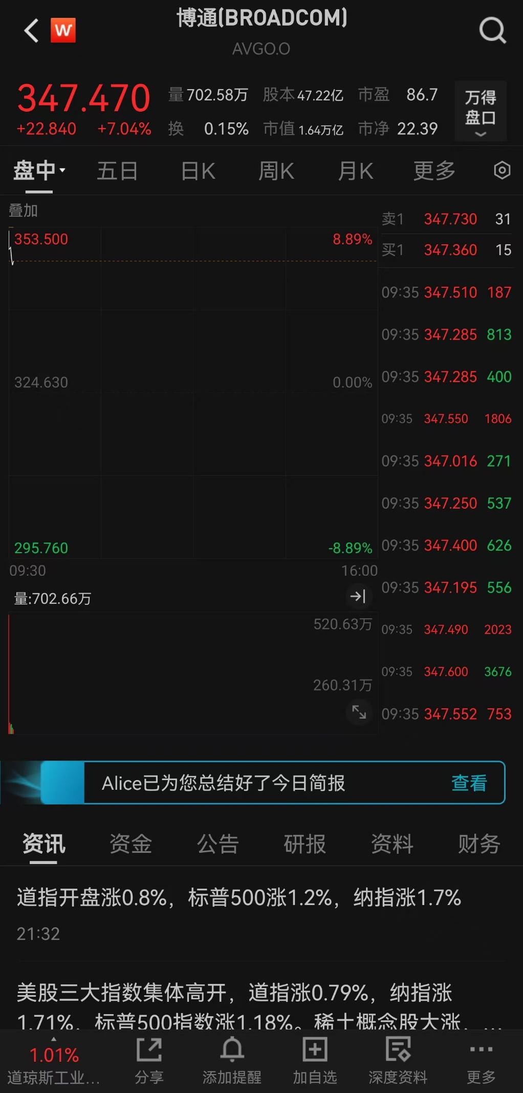 上证报中国证券网讯(记者郑维汉)北京时间10月13日21点35分,博通美股盘中上涨超7%。