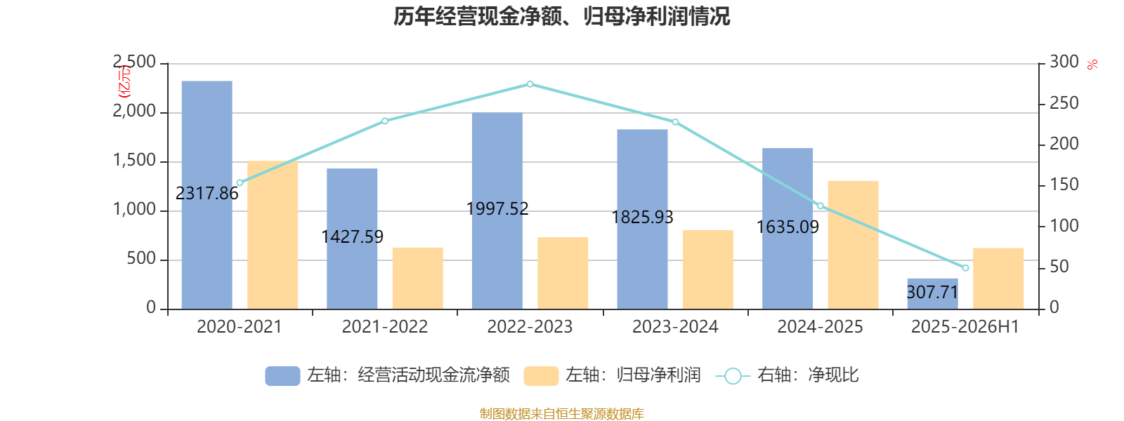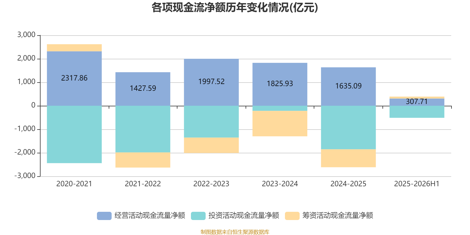 报告期内,公司经营活动现金流净额为307.71亿元;筹资活动现金流净额81.71亿元;投资活动现金流净额-513.24亿元。