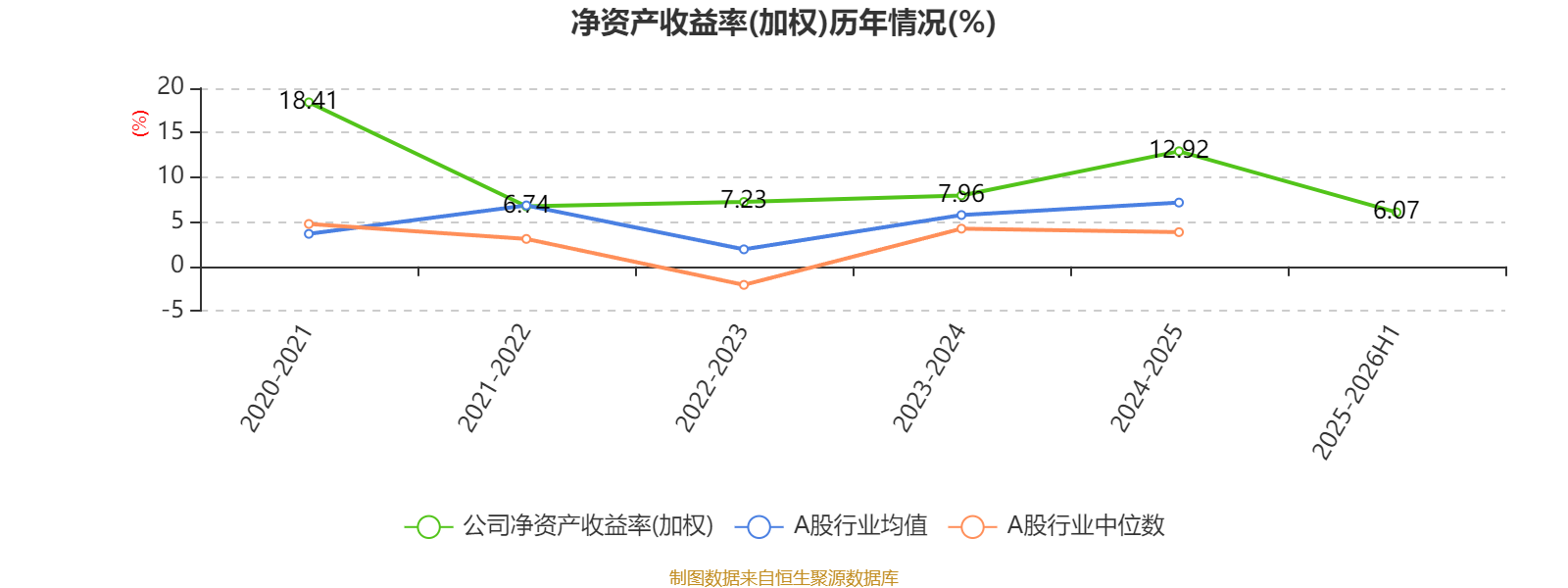 报告期内,公司平均净资产收益率为6.07%,较上年同期下降1个百分点。