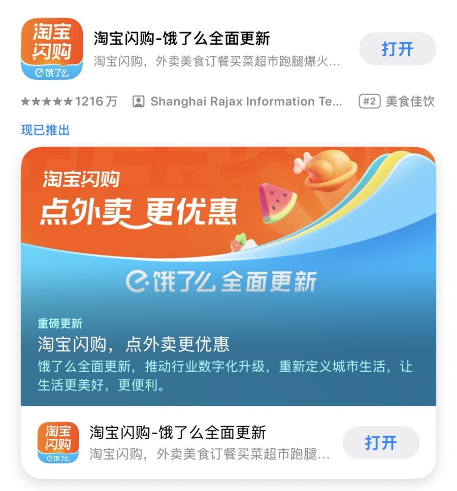 饿了么App已更新为淘宝闪购。
