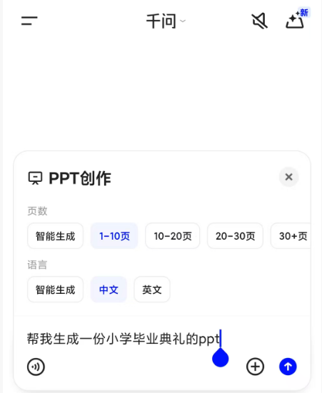 此外,千问App开放新功能,让这一AI助手加速从“会聊天”迈向“能办事”。目前,千问App向所有用户首批开放AI PPT、AI写作、AI文库、AI讲题四项新功能。