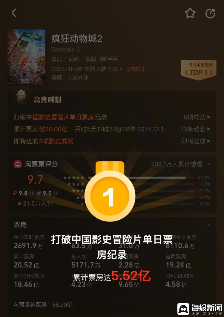 九年时间,疯狂动物城IP已从一部动画电影,成长为年创收超50亿元的商业矩阵。无论是乐园场景的深度运营,还是全域联名的精准布局,其核心逻辑都在于“以内容打动用户,以场景承接消费”。随着续作票房持续攀升(截至2025年12月2日12时,灯塔专业版数据显示,上映7天票房达20.52亿),成为中国影视第41部破20亿票房影片。这只“IP猛兽”的商业故事,显然还远未到落幕之时。