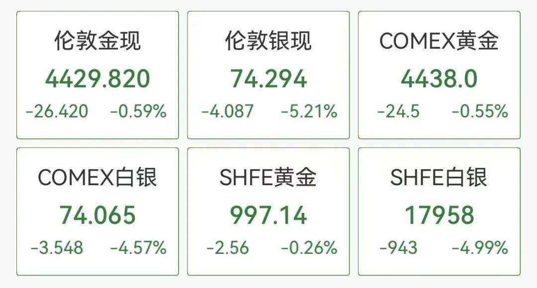 大宗商品方面,1月8日晚,白银价格进一步下挫,现货白银跌超5%,COMEX白银跌超4%。21世纪经济报道记者注意到,目前金银比(每盎司金价和银价比值)已经跌破60,位于59附近。1月6日,伦敦金现与伦敦银现的比值一度回落至57.22,突破过去十年的最低水平。