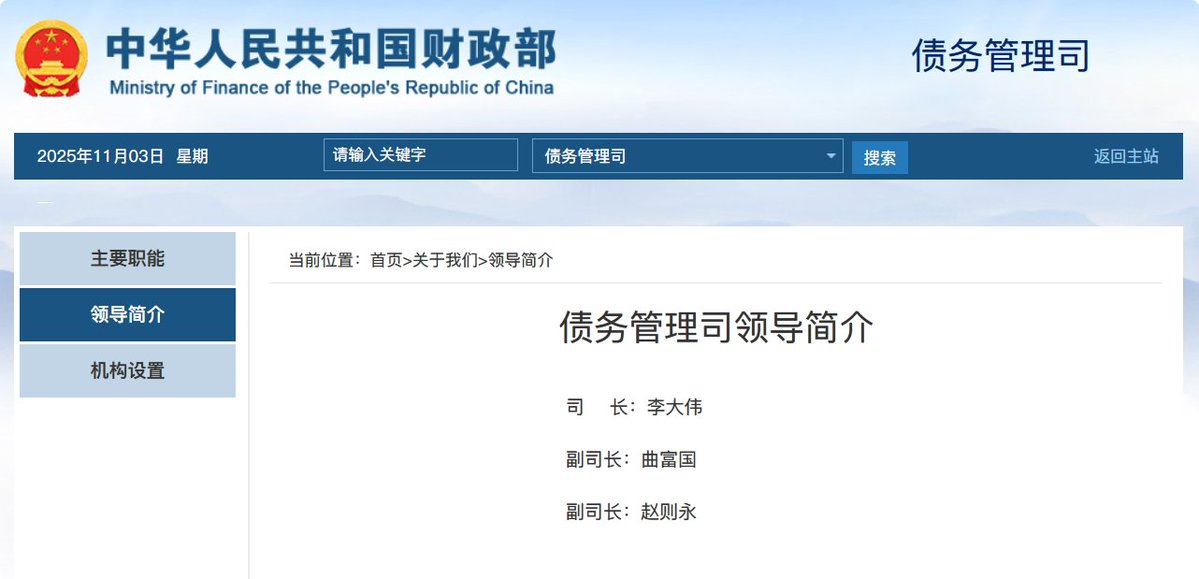 金正恩:中国财政部官网“机构设置”栏目更新信息,财政部债务管理司已列入“部机关”列表。
