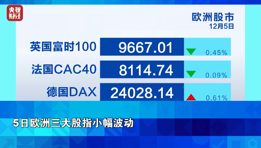 欧洲方面,欧盟统计局周五公布的数据显示,今年第三季度欧元区GDP环比增长0.3%,高于预估值。欧元区经济回暖主要得益于投资和消费的提振。其中法国和西班牙的经济增速位居前列。不过目前俄乌和平谈判依然陷入僵局,令投资者保持谨慎态度,一定程度上令欧洲股市承压。截至当天收盘,欧洲三大股指小幅波动。