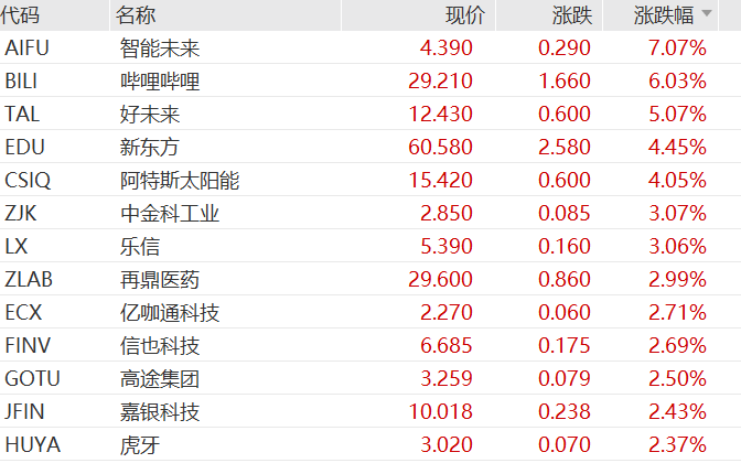 热门中概股跌多涨少,纳斯达克中国金龙指数小幅下跌0.6%。个股方面,蔚来、百度集团、阿里巴巴跌超2%;哔哩哔哩涨超6%,虎牙涨超2%。在线教育板块维持昨日涨势,智能未来涨超7%,新东方涨超4%。