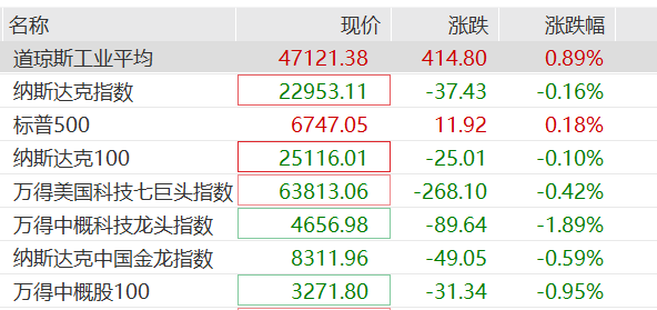 10月21日,美股三大指数开盘涨跌不一,截至23时许,道指涨0.89%,纳指跌0.16%,标普500指数涨0.18%。