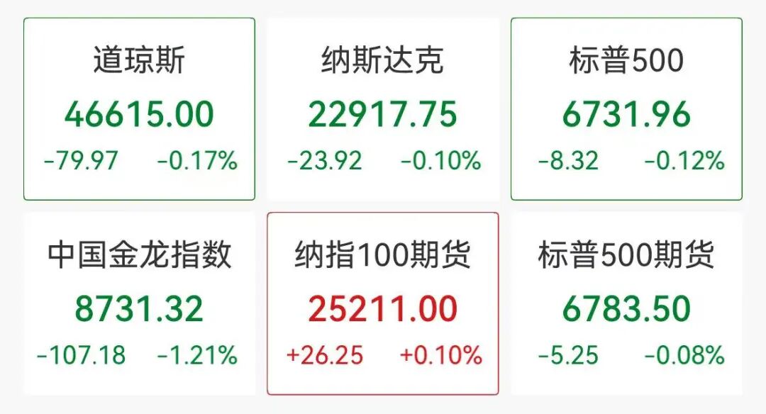 10月7日,美股三大指数走低,截至北京时间22:50,道琼斯指数跌0.17%,标普500指跌0.12%,纳斯达克综合指数跌0.10%。