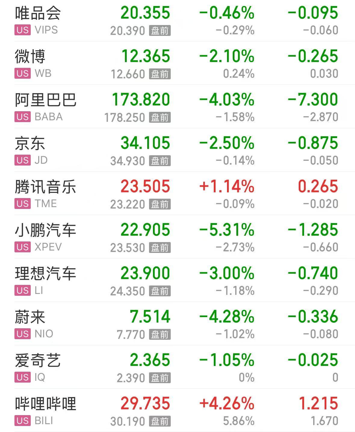 热门中概股普跌,小鹏汽车跌超5%,阿里巴巴、蔚来跌超4%,理想汽车下跌3%,微博、京东跌超2%。