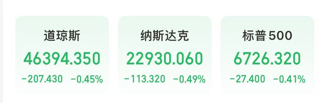 北京时间10月9日晚,美股三大股指开盘小幅上涨,随后又由涨转跌,截至发稿前,道指跌0.45%,纳指跌0.49%,标普500跌0.41%。