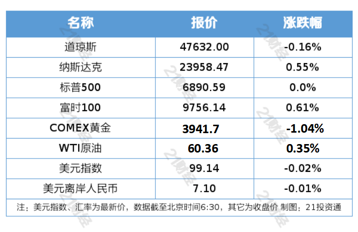 1、美国三大股指收盘涨跌不一,道指跌0.16%,标普500指数持平,纳指涨0.55%。波音跌超4%,联合健康集团跌逾3%,领跌道指。万得美国科技七巨头指数涨1.14%,英伟达涨近3%,总市值站上5万亿美元大关,谷歌涨超2%。中概股涨跌不一,阿特斯太阳能涨近16%,陆控跌超5%。美联储如期降息25个基点,并宣布将自12月起结束缩表。鲍威尔称12月并不必然降息。