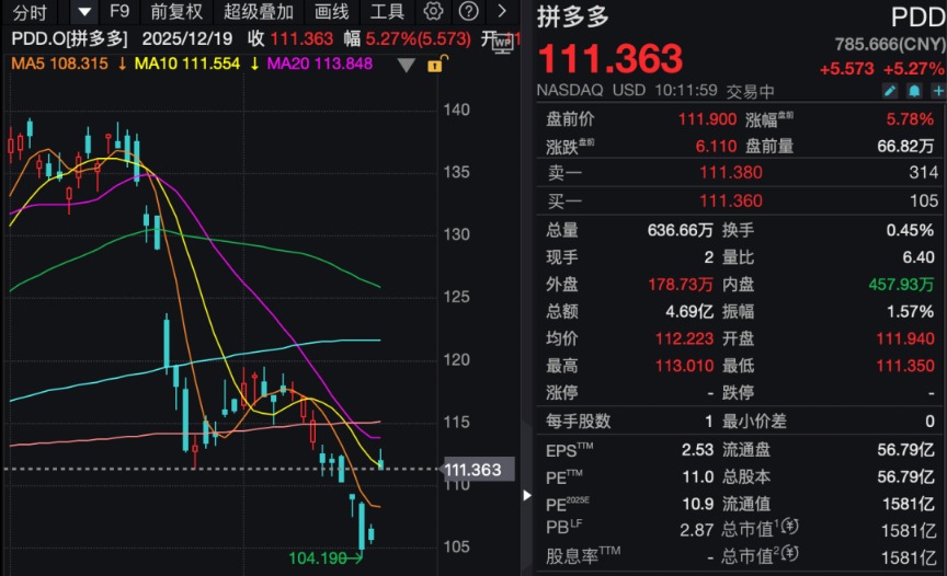 拼多多涨超5%。消息面上,12月19日,拼多多集团年度股东大会宣布升级治理架构,实行联席董事长制度。经董事会批准,赵佳臻获任联席董事长,与陈磊共同担任联席董事长兼联席CEO。