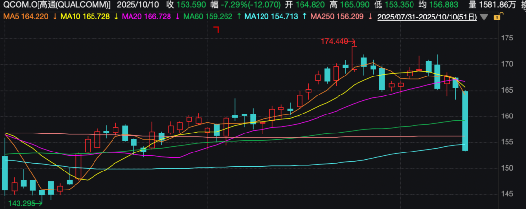 此前,10月10日,因高通公司收购Autotalks公司未依法申报经营者集中,涉嫌违反《中华人民共和国反垄断法》,市场监管总局依法对高通公司开展立案调查。当地时间10月10日,高通美股大跌超7%。