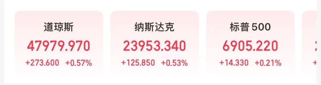北京时间10月29日,美股三大指数集体高开,截至发稿,道指涨0.57%,报47979.97点;纳指涨0.53%,报23953.34点;标普500指数涨0.21%,报6905.22点。