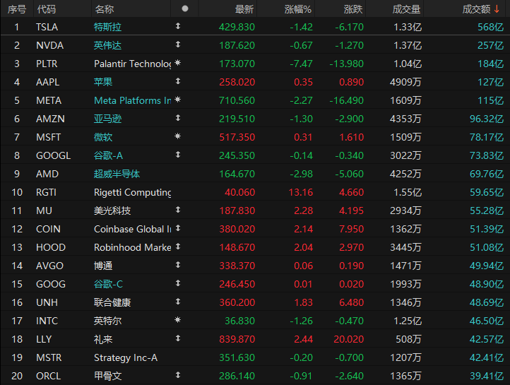 美股成交额前20:Palantir跌超7% 因其正在开发的美国陆军战场通信系统存在严重的安全漏洞