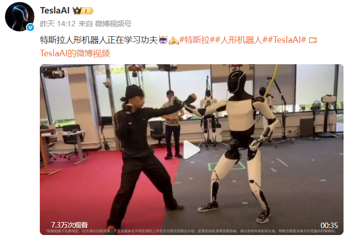 视频显示,“擎天柱”正与专业人士学习功夫,它展示了用于自卫的武术技巧,且并非单纯模仿专业人士的动作,而是精准应对每个招式并进行反击。有网友提问“擎天柱”是由远程操控还是人工智能(AI)驱动的。马斯克回应称,“AI,而非遥控操作”。