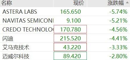 科技股多数下跌,闪迪跌约4.5%,迈威尔科技跌近3%。美股科技七巨头涨跌不一,脸书跌1.5%领跌。