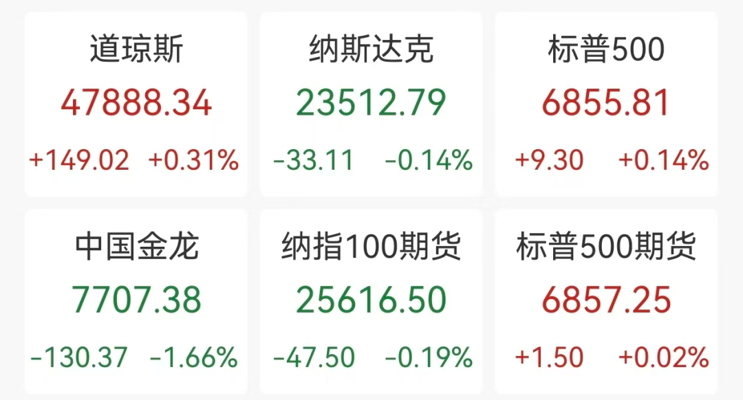 北京时间12月9日晚,美股指数涨跌不一,截至23:00左右,道指、标普500指数小幅上涨,纳指下跌。