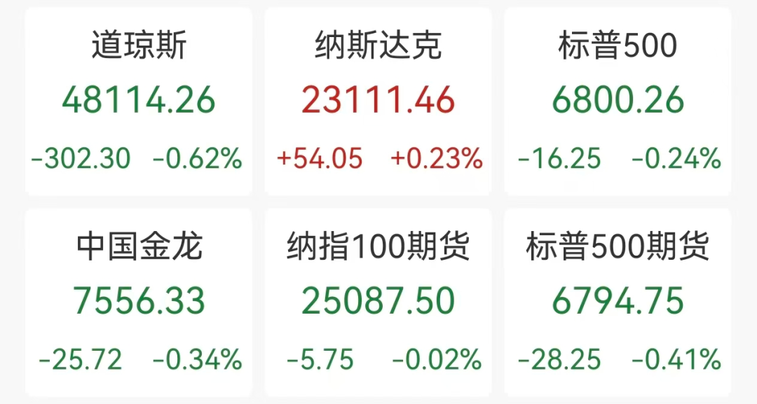 油气、能源板块跌幅居前,英国石油跌超4%。加密货币概念、计算机硬件板块涨幅居前,Hut 8涨近4%,Strategy、SanDisk涨超3%。