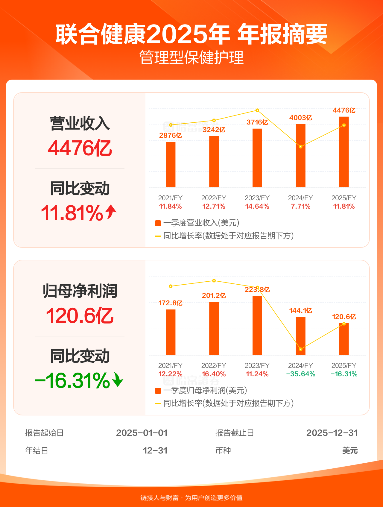 【图解财报】联合健康年报盈利120.56亿美元,同比减少16.31%